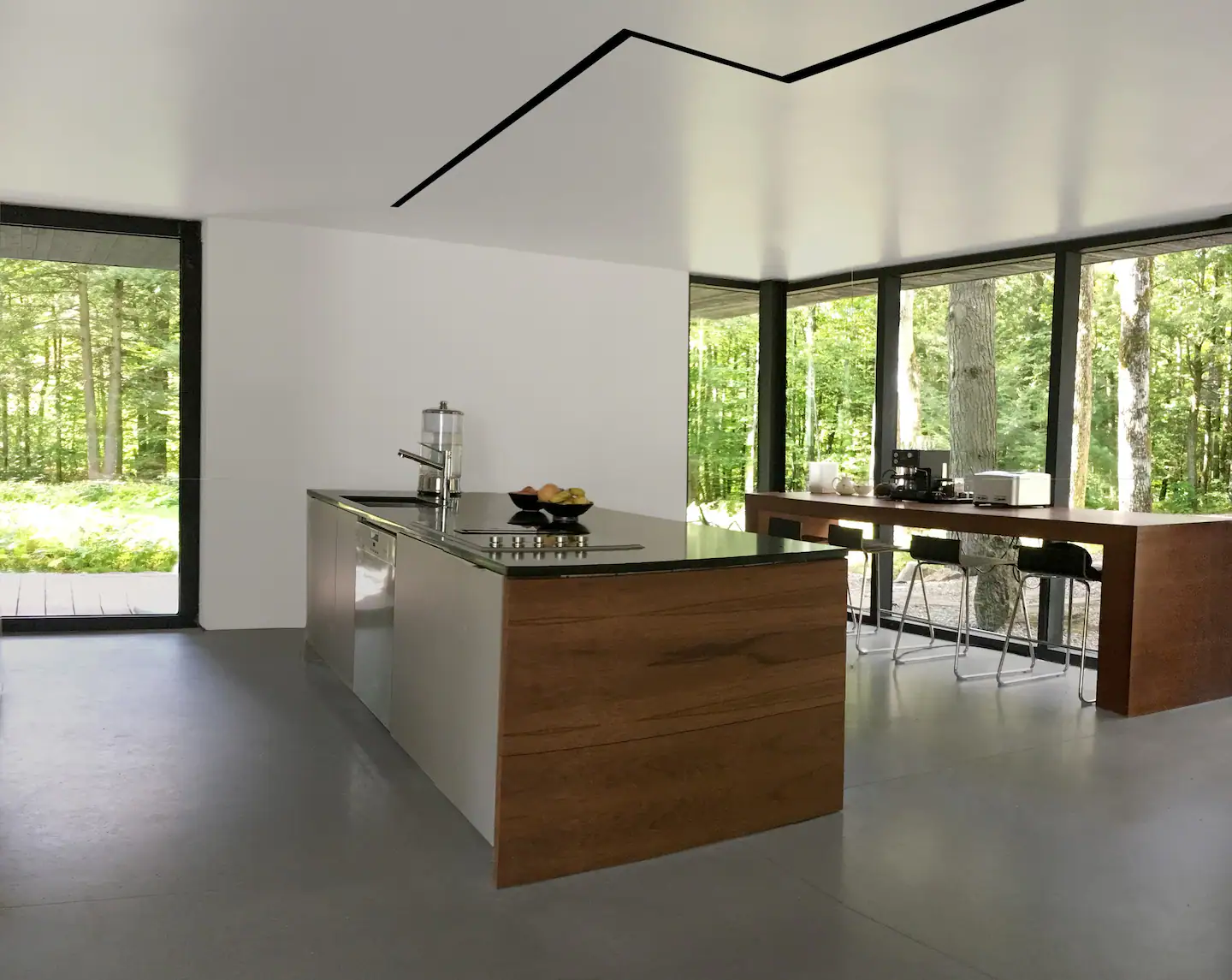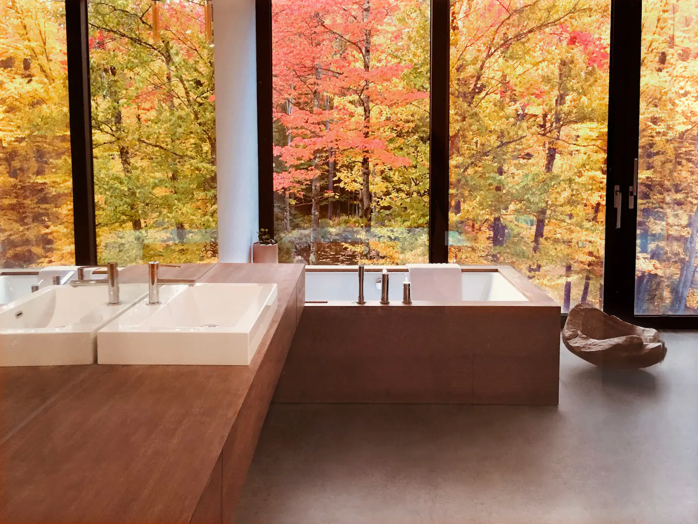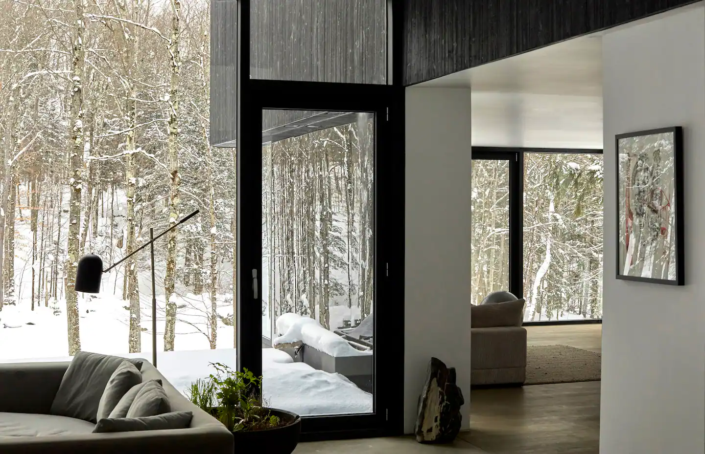 Situé à Sutton avec Lac Privé / Contemporain / 3 chambres / Grande maison d architecte contemporaine presqu entierement vitrées avec vue sur un lac privé et bordée d'une rivière d'eau de sources , en pleine nature et a 8 min. de voiture des sentiers pedestre , vélo de montagnes et de ski du mont Sutton, a 5 min. de voiture du village de Sutton et ses restaurants , cafés , terrain de tennis et pres de la riviere Missisquoi et ses activités de kayak.