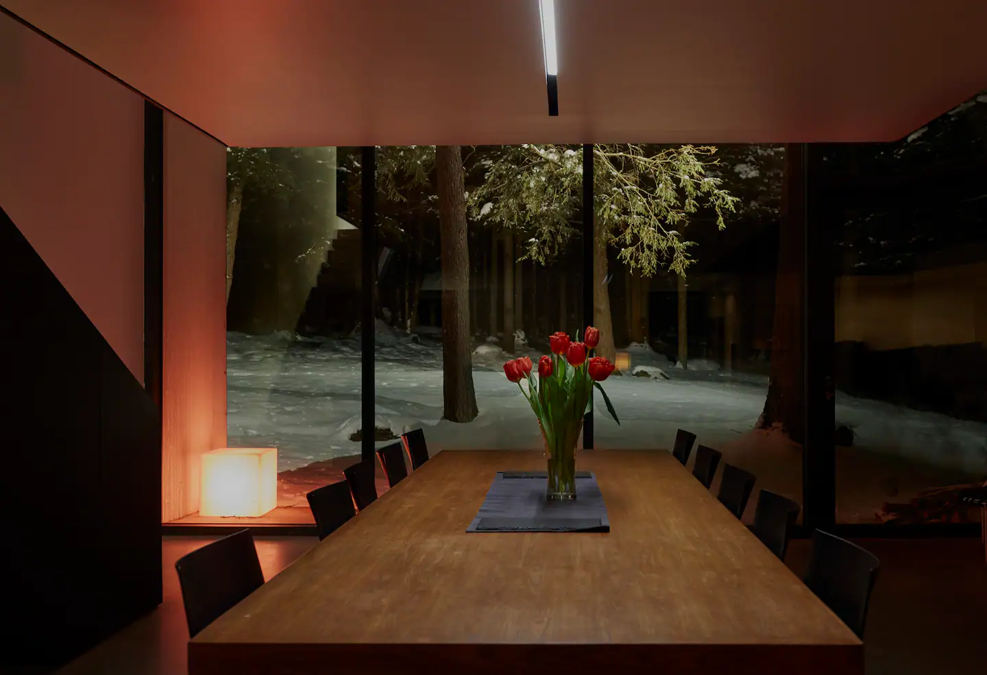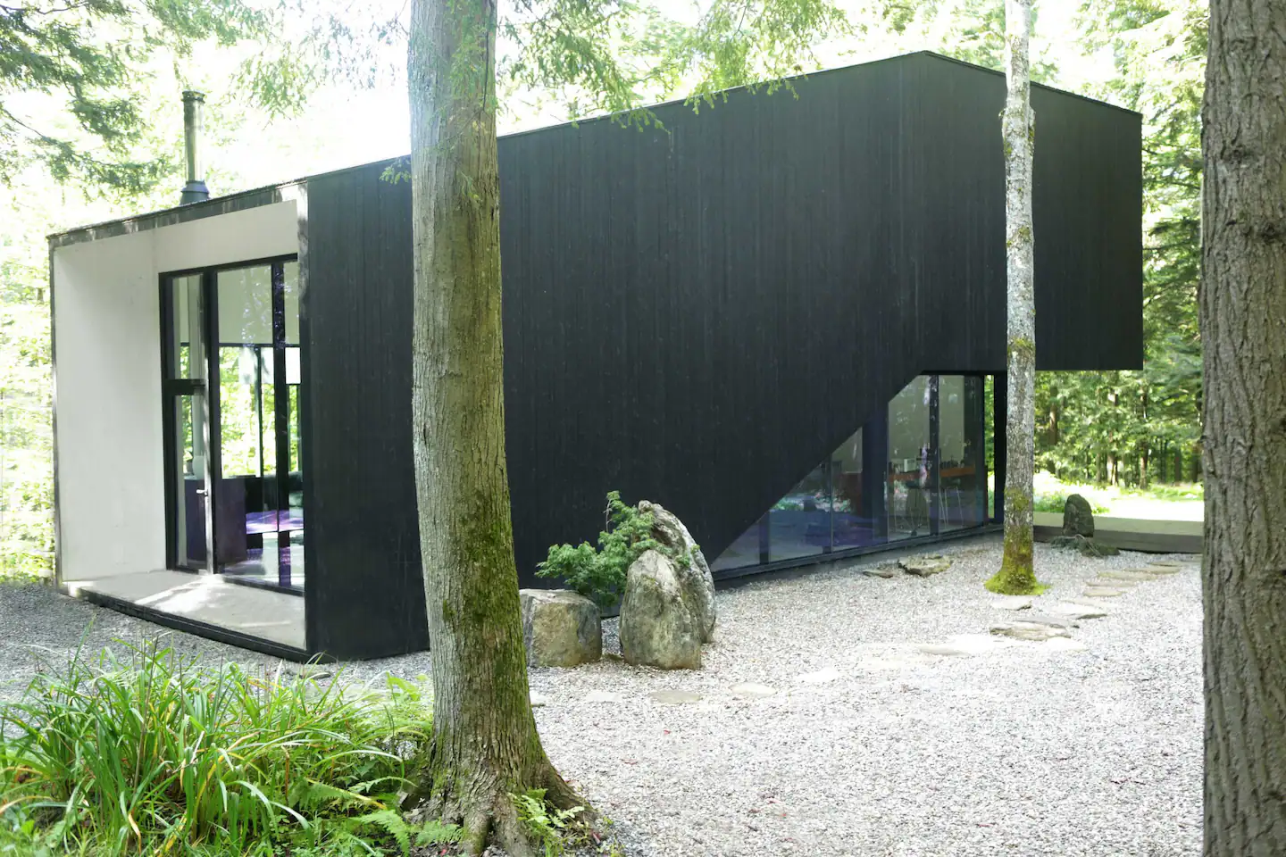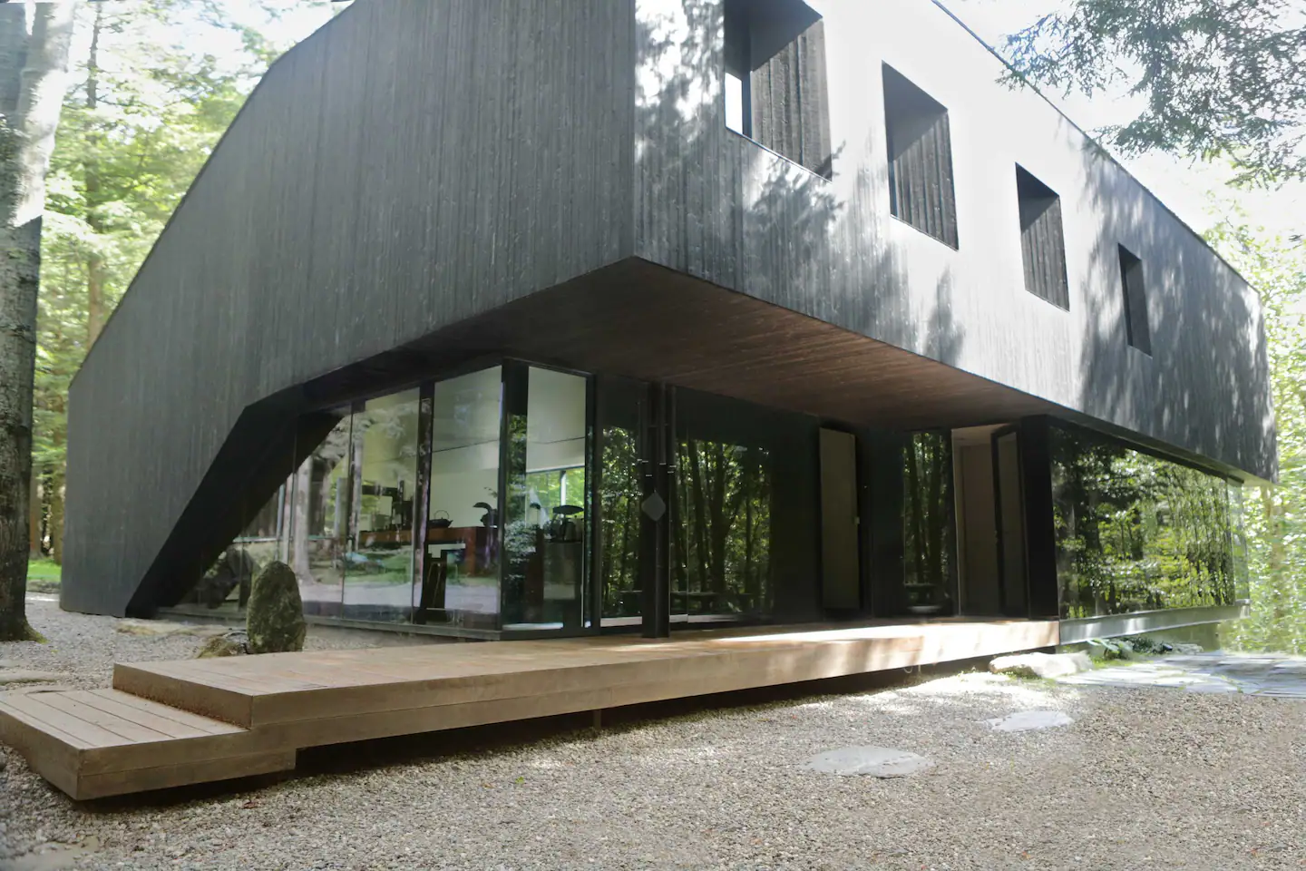 Situé à Sutton avec Lac Privé / Contemporain / 3 chambres / Grande maison d architecte contemporaine presqu entierement vitrées avec vue sur un lac privé et bordée d'une rivière d'eau de sources , en pleine nature et a 8 min. de voiture des sentiers pedestre , vélo de montagnes et de ski du mont Sutton, a 5 min. de voiture du village de Sutton et ses restaurants , cafés , terrain de tennis et pres de la riviere Missisquoi et ses activités de kayak.