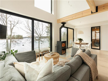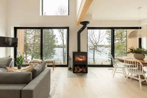 Chalet situé au lac Simon avec plage privée de 170 pieds linéaire .