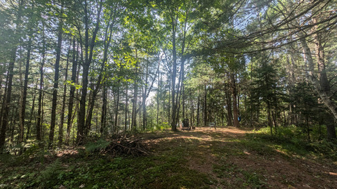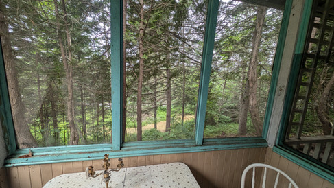 Près de Mont Tremblant / Vieille maison sur une colline boisée avec vue sur la Rivière-Rouge à La Macaza. Le terrain offre aussi un accès à la rivière et une vue sur le pont du petit chemin du nord et sur le pont couvert rouge. La maison est strippée sur le bois d’origine avec un grand foyer de pierre (non fonctionnel). Il n’y a pas de cuisine.